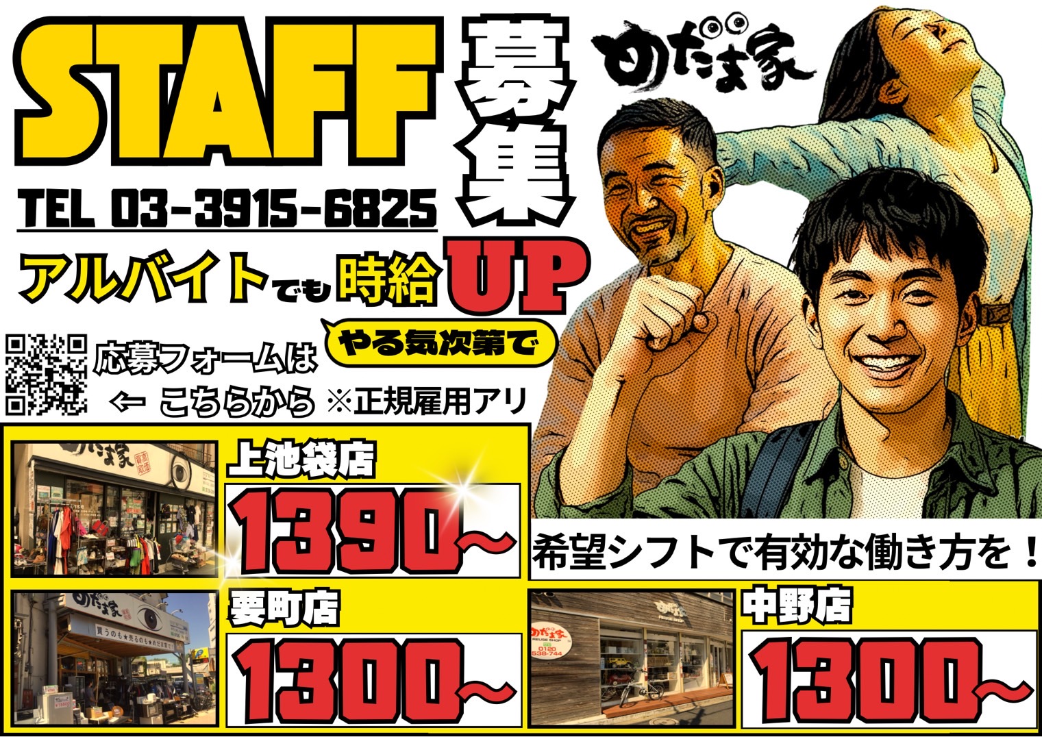 リサイクルショップめだま家(株)メルティングポットでは一緒に働いてくれるスタッフを随時大募集中です!多様なライフスタイルに合わせた働き方で、あなたの個性を活かしてみませんか? サイト下のフォームからご応募をお待ちしております!